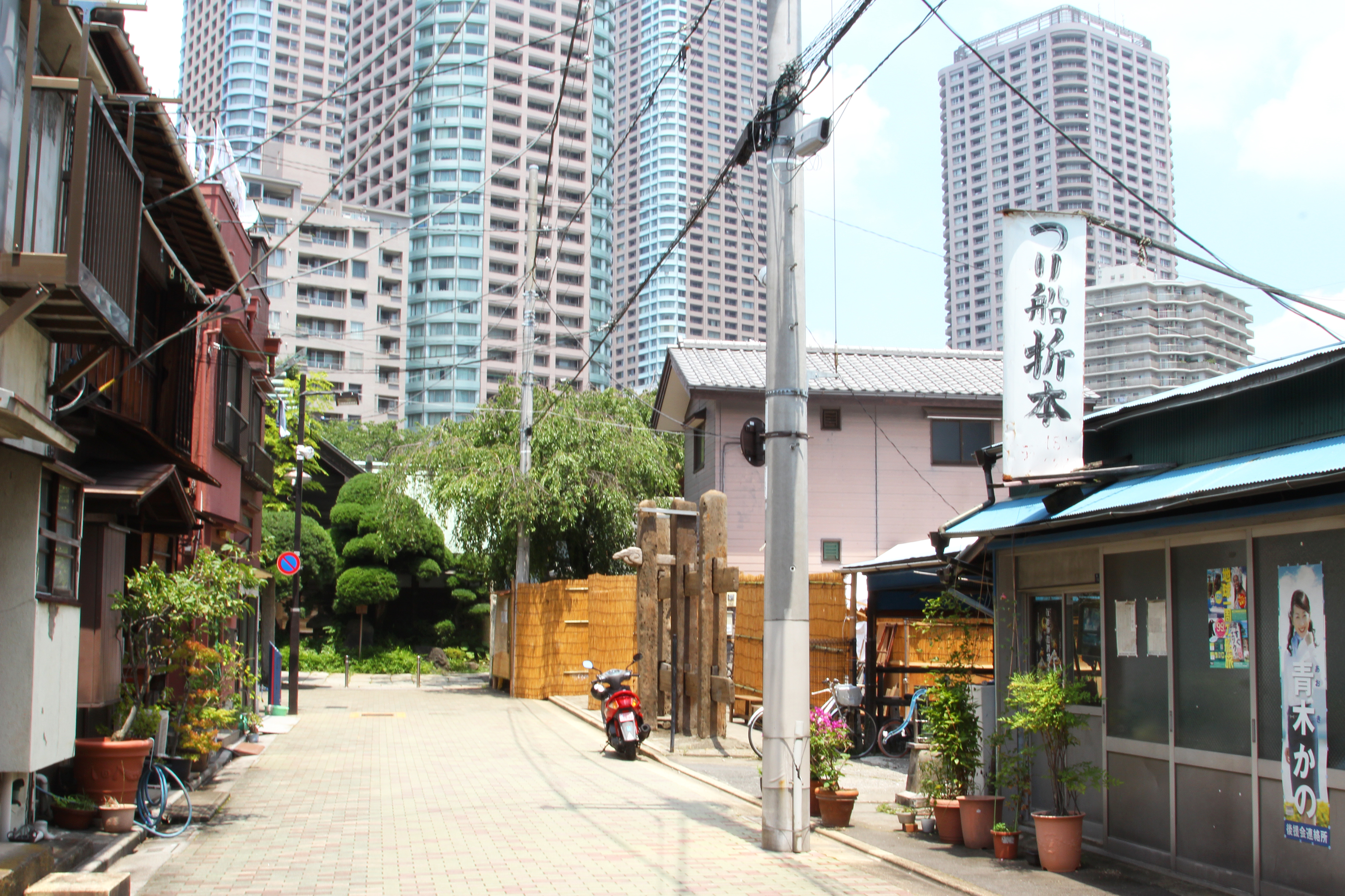 Now for the place where I actually live: Tsukishima (月島, lit. “Moon Island”), a half-urbanized, half-traditional place with skyscrapers as well as some lovely architecture left from the Edo period.